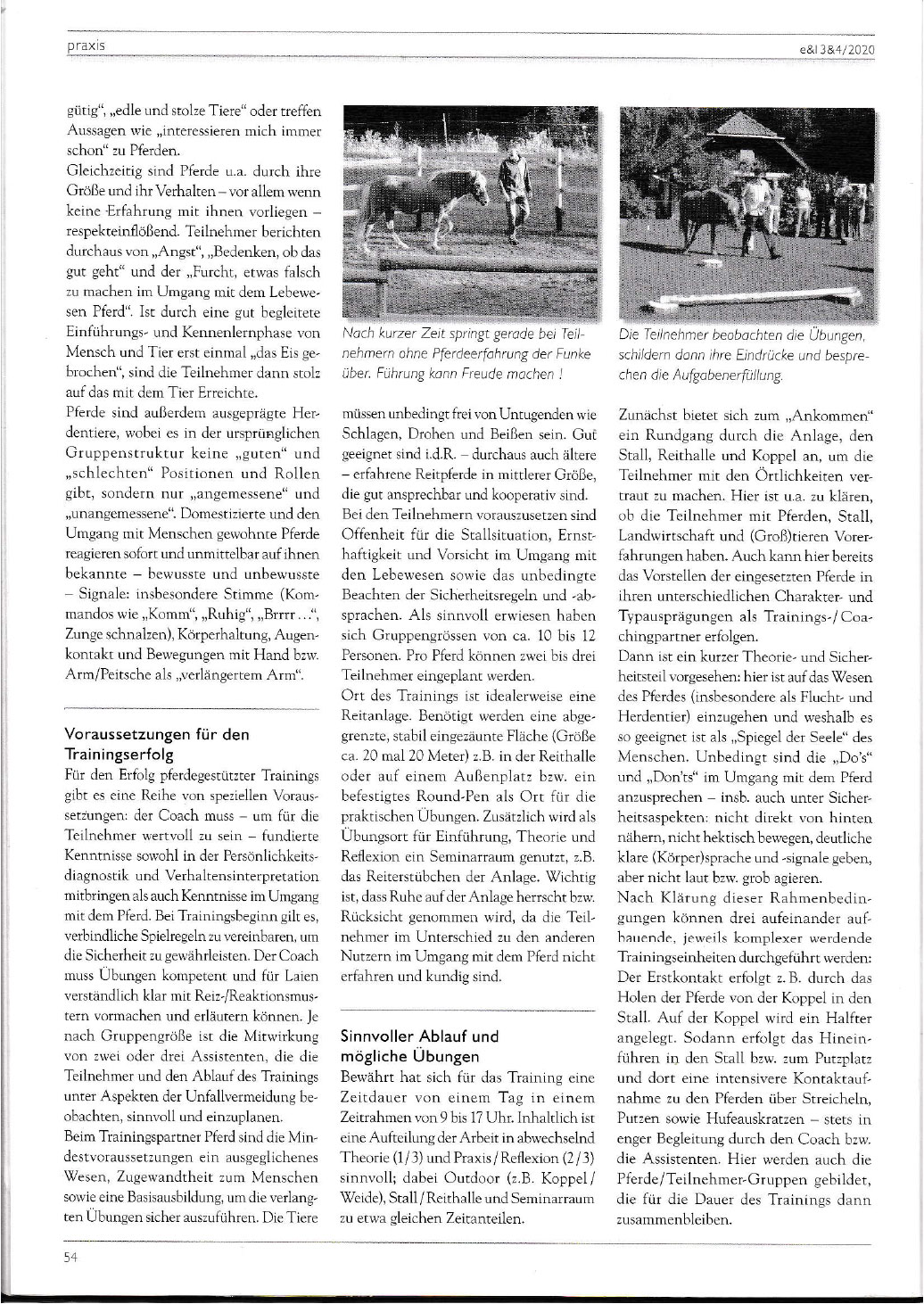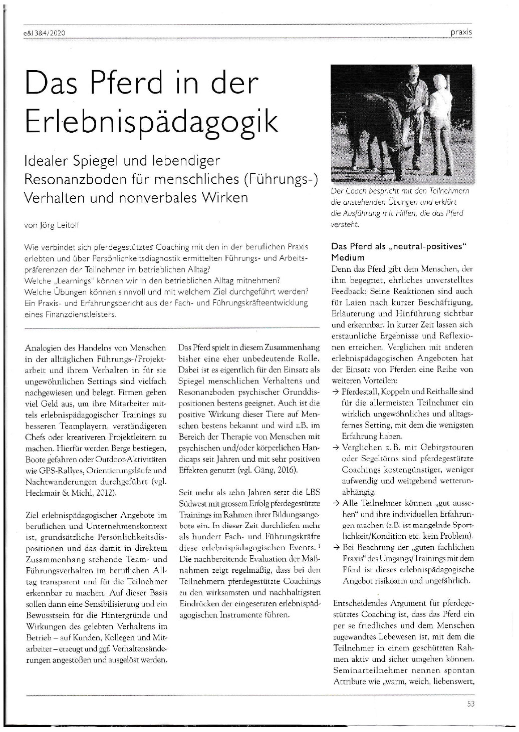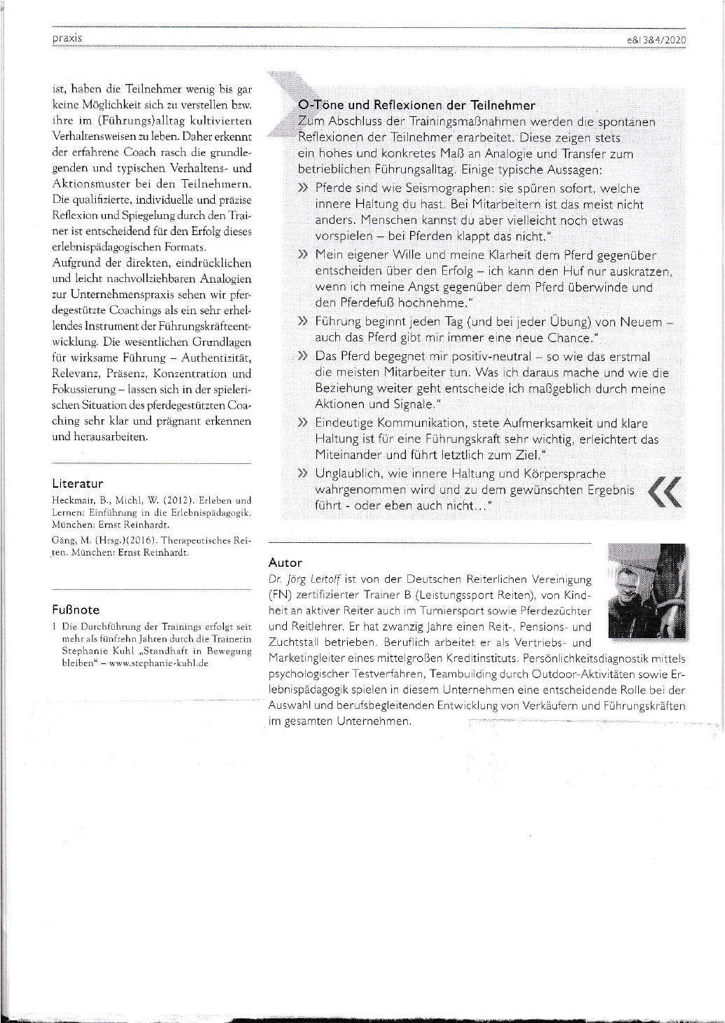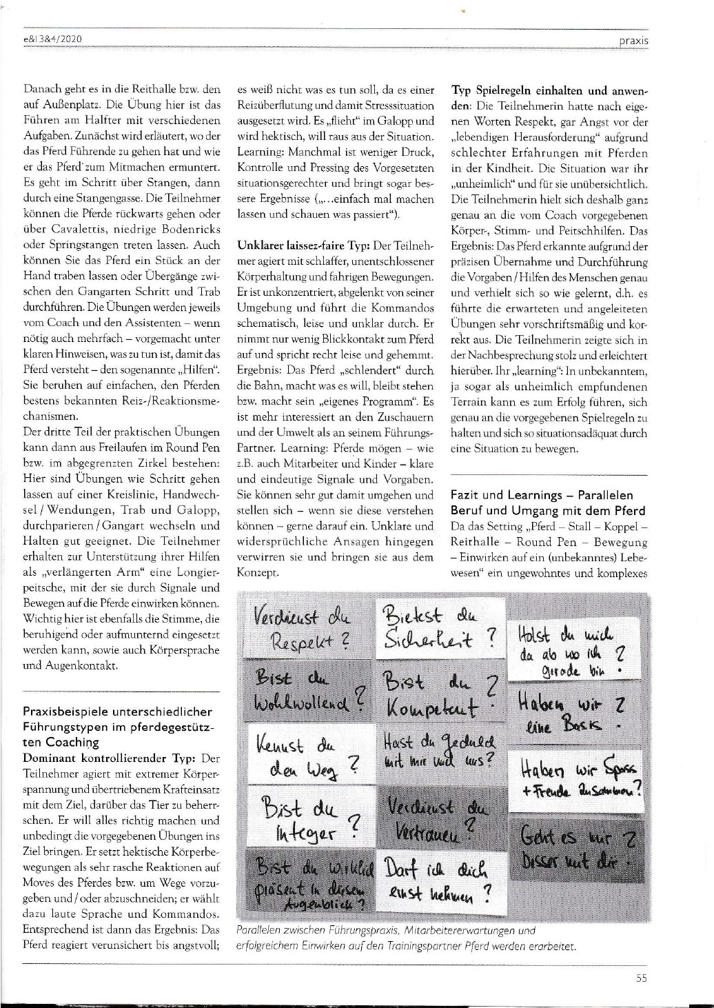 Idealer Spiegel und lebendiger Resonanzboden für menschliches (Führungs)Verhalten und non-verbales Wirken, in: erleben und lernen – Internationale Zeitschrift für handlungsorientiertes Lernen, Ausgabe 3 & 4 / 2020, S.53-56 (4 Druckseiten)
